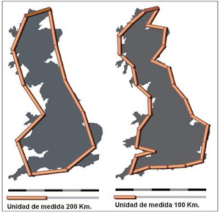 Dim. fractal (*)= 1 + 2/logL(N) , siendo L(N) el valor del lado que consideremos, como función de N. Para L(N)= 1/N tenemos el valor -1, para L(N)=N, le corresponde el valor 3, como hemos dicho. Para valores de exponente natural más negativos (1/N2 ) y mayores la dimensión se acerca asintóticamente a l. Para valores mayores de N, como N2, N3, o de mucho mayor exponente el valor asintótico será también 1.